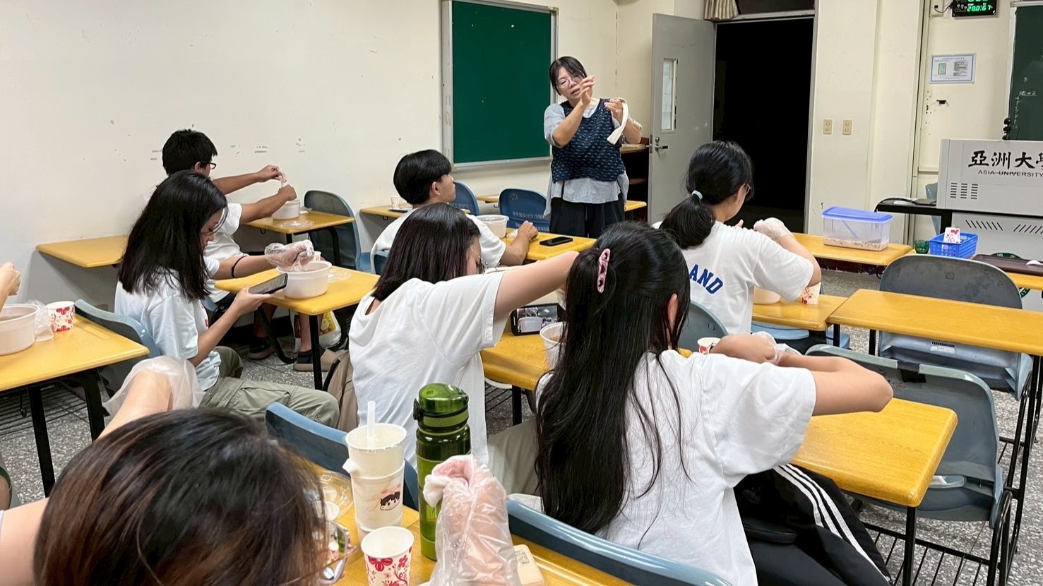 講師:黃淑華 活動簡介:認識台灣特有植物愛玉的生長特性、膠質生成原理與辨識方法,理解其在本土飲食文化與生態系統中的角色與價值;在親手製作天然愛玉凍的過程中,培養對在地農產與自然資源的尊重,深化食材來源與文化連結的感知,強化對台灣生態多樣性的認同;掌握從籽選、搓洗、過濾到冷藏凝結的製作流程,具備創作天然甜品的能力,並能延伸應用於健康飲品或地方食育推廣。 在炎炎夏日裡,愛玉以其天然爽口的獨特風味,成為許多人最喜愛的消暑甜品,為了讓學生認識台灣特有植物愛玉的生態,並體驗手作的樂趣,亞洲大學登峰學苑於114年9月30日(星期二)晚間18點30分,在資訊電機學院 I106 教室舉辦「清涼一夏~幸福好滋味『愛』你『玉』萬年」活動,特別邀請黃淑華講師,引領學生從品嚐愛玉、認識植物特性,並親手製作愛玉籽娃娃,展開一段清涼又有趣的體驗。 活動以試喝愛玉作為暖場,學生們先透過味覺感受愛玉的清爽口感,講師才開始介紹愛玉的歷史、生態與生長環境,講解果實採收方式及辨識愛玉的重要性。隨後,將裝有愛玉籽的布袋放入含礦物質的水中進行搓揉溶出果膠,與硬水中含有的鈣、鎂等二價礦物質離子結合,進行「交聯反應」,形成穩定的三維網狀結構,進而將水包覆在其中,透過觀察水逐漸變得濃稠的變化,最終凝固成果凍狀,學生了解到科學原理與操作細節,建立完整的製作概念。
