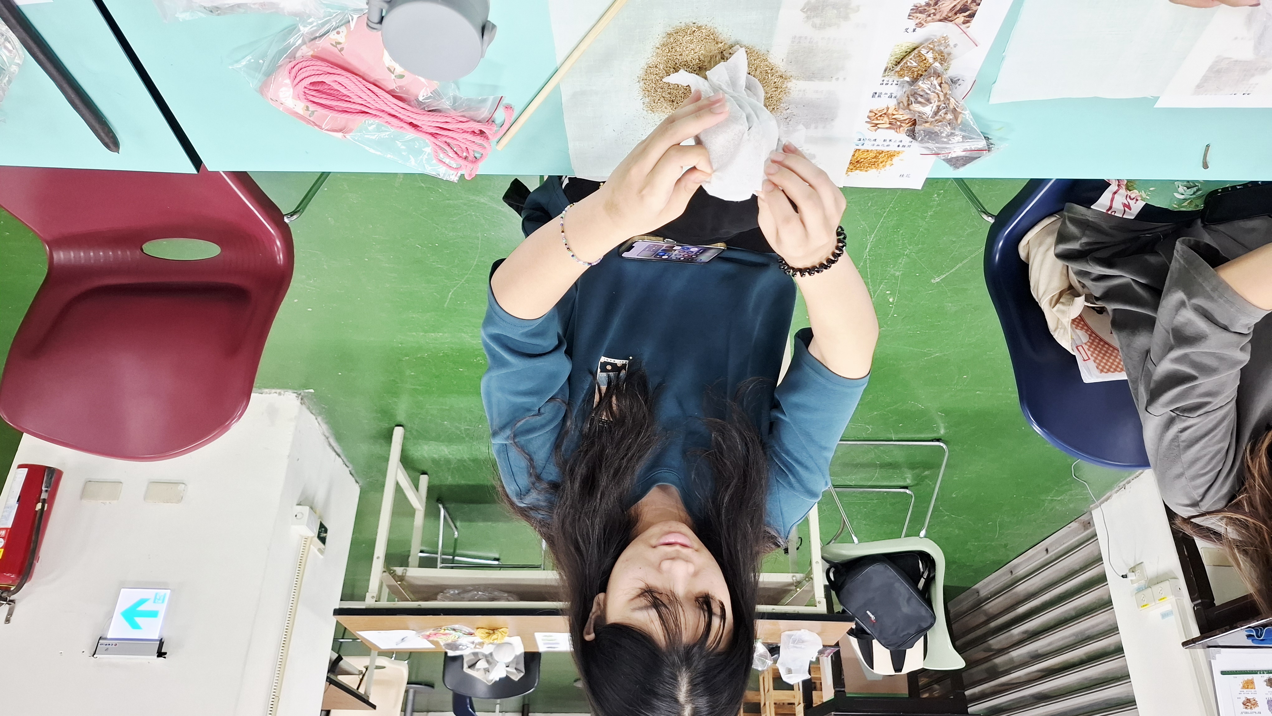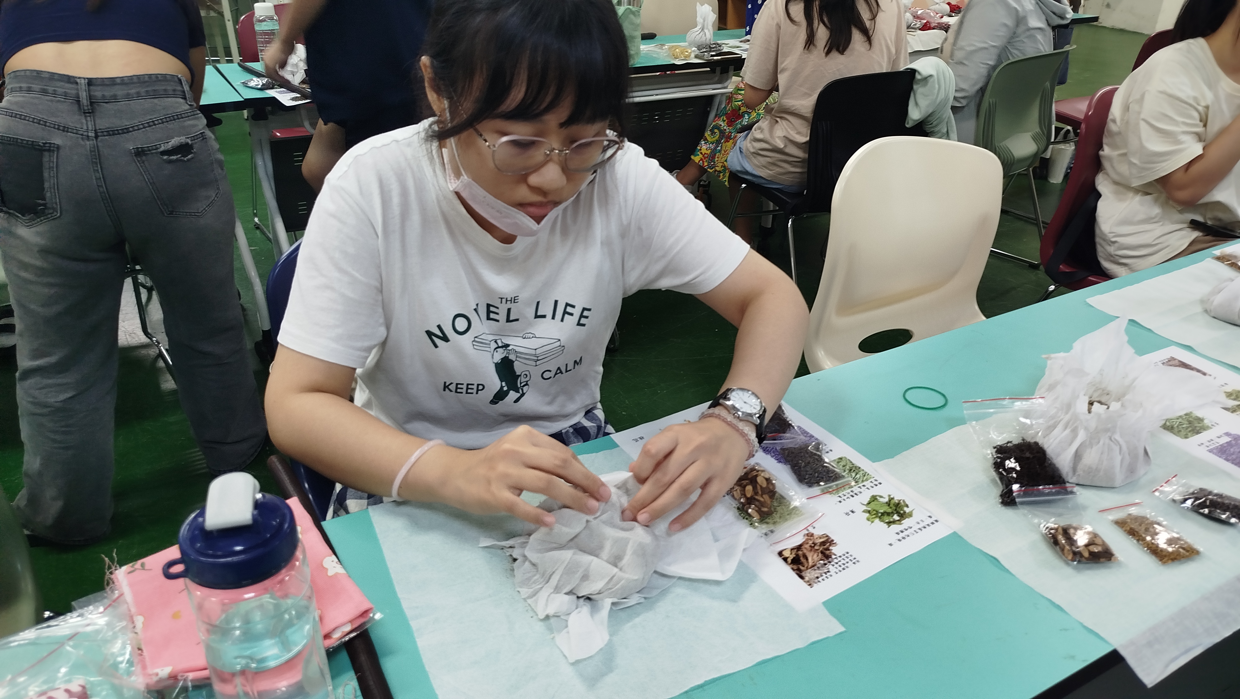隨後進入實作環節,學生們運用各種香料的搭配原則,挑選自己喜愛的乾燥草藥與香料,將選好的草藥與香料適量混合後,放入中藥布中,仔細整理成圓球狀,再用麻繩緊密綁紮固定在木棒上,最後將花布包裹在木棒外圍,並用毛線牢固綑綁完成屬於自己的藥草按摩棒,在過程中,學生們邊操作邊微調,注意草藥的分布與綁紮緊度,草藥的芳香逐漸瀰漫於空氣中,整個教室彷彿化身為一座溫暖舒心的小小香氛森林,透過這一系列的操作,學生不僅掌握了製作技巧,也理解藥草在生活保健與情緒調節中的應用,講師鼓勵大家試著在步調快速、壓力龐大的現代生活中,放慢步調,並透過自製的藥草按摩棒在家享受片刻放鬆,加強對自己身心關愛的生活態度。 幼教系的劉同學分享:「我認識藥草的種類與功效,這些可以泡茶的植物,居然可以變成按摩棒,還有阿伯勒變成按摩棒的棍子,真的很神奇耶!」 心理系的賴同學說:「在這堂課學會了幾樣草藥的功效,搭配自己的所需做出獨一無二的按摩棒。做的步驟看起來很簡單但是實際做缺很難需要花很大的力氣去固定。」 聽語系的高同學表示:「體驗到藥草棒的製作,這次活動很有趣又好玩,可以體驗到平時不曾做過的事情,這不僅讓我們動手做,更讓我們與其他人交流互動。」 幼教系的甯同學表示:「我覺得今天的活動很有趣,認識了不同的藥草功能療效,在製作按摩棒的過程很考驗手部肌肉。」 物治系的林同學表示:「學習到了一些不同乾藥草的成效,像是我很喜歡的桂花竟然還有散寒止痛的功效。」 整堂課程在溫暖的香氣中圓滿落幕,共吸引29位學生參與,透過這次活動,學生們不僅學習到藥草的基礎知識與按摩棒的製作技巧,更在過程中培養了珍惜自然資源與關懷自我健康的品德,從挑選草藥、混合香料、綁紮成形到實際熱敷體驗,每一個步驟都蘊含著專注與愛的能量。透過手作與感官的結合,學生們體會到自然療癒的力量,也學會在忙碌的生活中為自己保留一份溫柔的喘息。 |