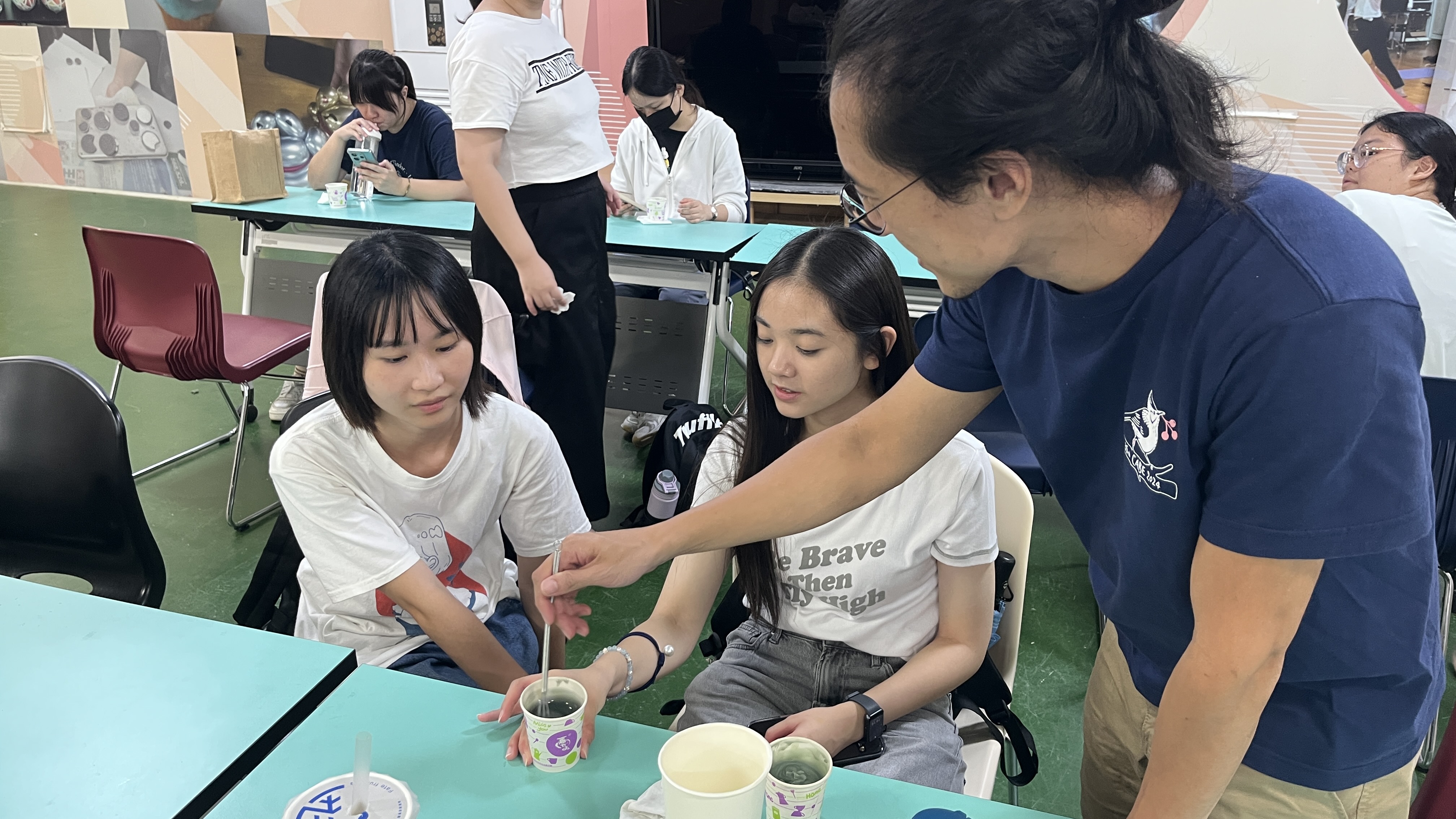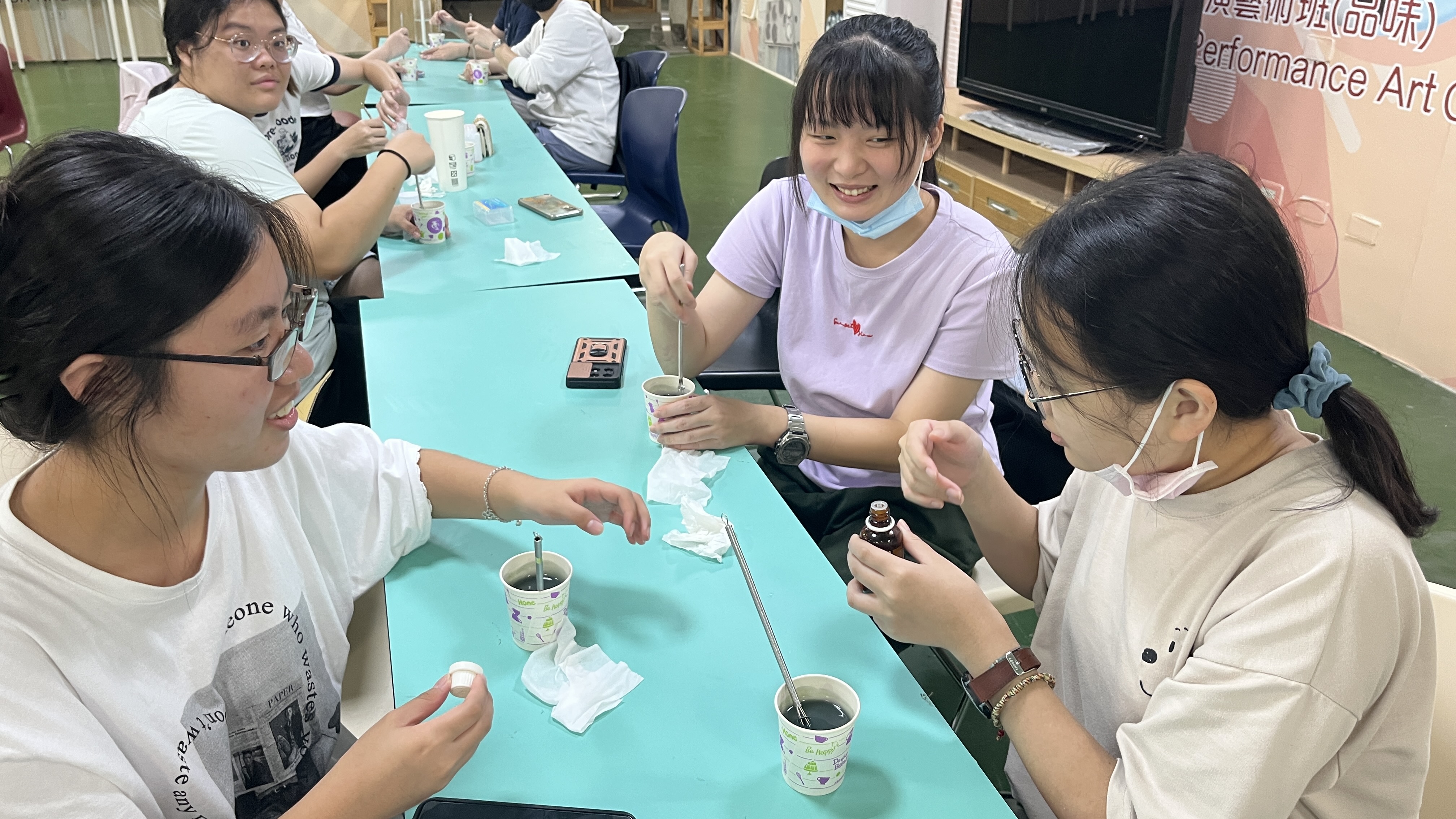 進入實作階段時,學生們將秤量好的油脂倒入紙杯,再加入氫氧化鈉與酒粕混合攪拌。在攪拌過程中,學生需仔細觀察混合物的濃稠變化,判斷何時停止攪拌並靜置凝固,當液體漸漸轉為柔滑乳泥狀時,教室內彌漫著酒香與油脂混合的天然氣息。 在攪拌的最後階段,學生依喜好加入不同分量的紫草根精油,伴隨清新香氣,熱烈地討論濃度差異帶來的感受,體會香氣的放鬆與療癒,同時在親自完成作品的過程中培養自信與成就感,並以探索者的心觀察化學反應的奇妙變化。 職治系的戴同學:這是我第一次自己動手做肥皂,過程中雙手真的超級痠!但當看到完成的肥皂時,心裡湧現滿滿的成就感,也覺得自己的努力非常值得。 心理系的林同學:這次活動讓我學到肥皂的完整製作流程,包括成分選擇與比例控制。此外,還得知肥皂能有各種不同的成分,例如中藥材或美白配方,讓我對天然保養品有想更深入認識的慾望。 物治系的謝同學:我覺得肥皂的觸感非常特別,油與鹼就能變成肥皂,化學課本上的反應式在眼前真實呈現,讓我對化學理論有了更直觀的理解,感覺超讚! 職治系的鐘同學:我學會了手工肥皂的製作方法,也了解了今天的肥皂是如何透過氫氧化鈉、油脂與精油結合而成的。整個體驗非常特別,也讓我對手作的過程充滿好奇與興趣。 保健系的郭同學:這次活動不只是單純的肥皂製作,在過程中我學到了所需材料與反應原理,也觀察到油脂與氫氧化鈉慢慢結合、釋放熱量的過程。這種視覺與感官的化學體驗非常特別,讓我印象深刻,也更加期待下一次的手作活動。 本次活動共有24位學生參與,從介紹酒粕、手工皂的製作步驟,到認識紫草根精油的功效,每個環節都希望能啟發學生對天然成分的探索,和了解製作手工皂的過程與原理。活動最後,學生不僅明白了環保再利用與自我照護的關係,也帶著親手完成的肥皂,滿載收穫與喜悅地結束這段美好的體驗。 |