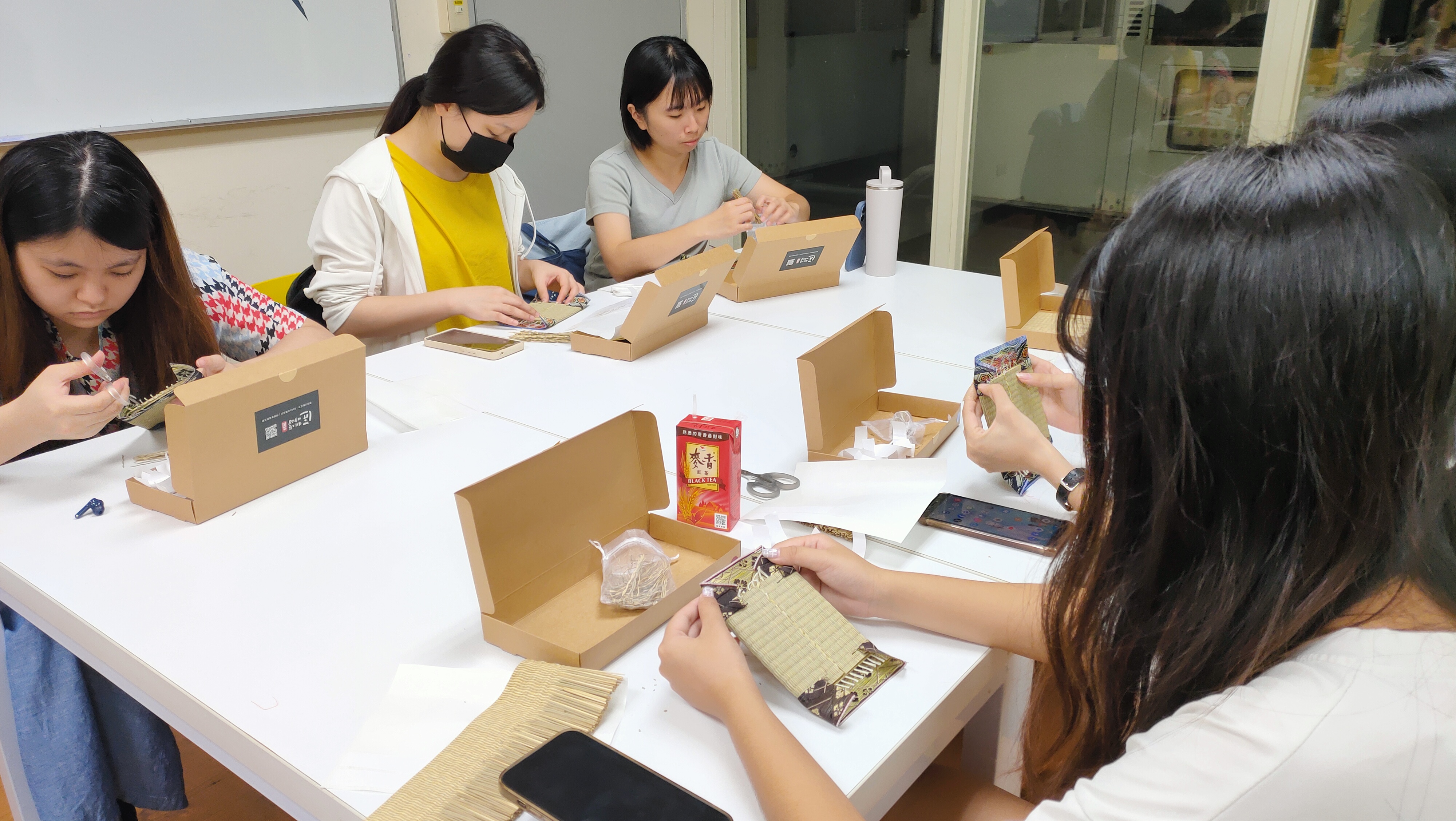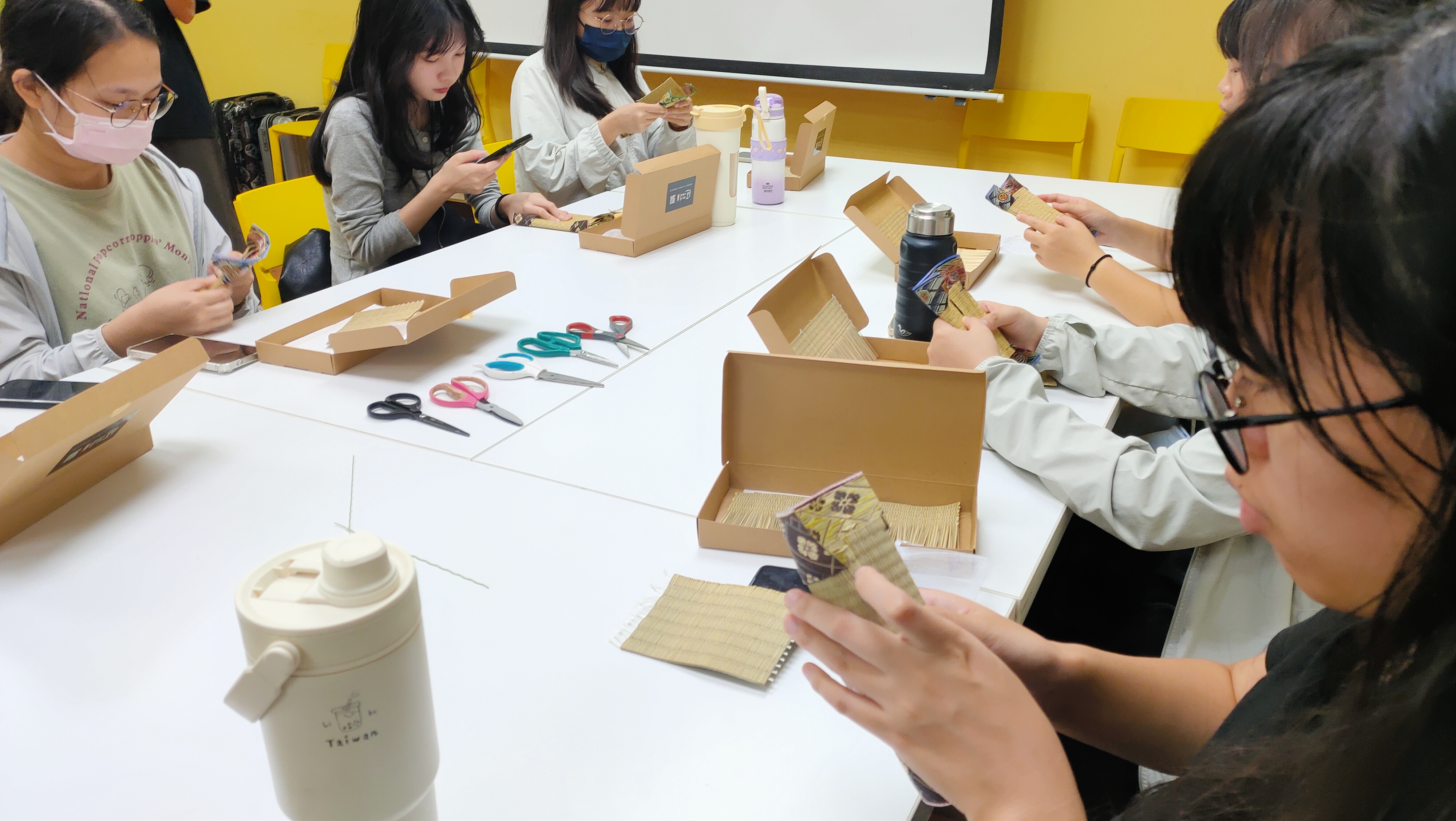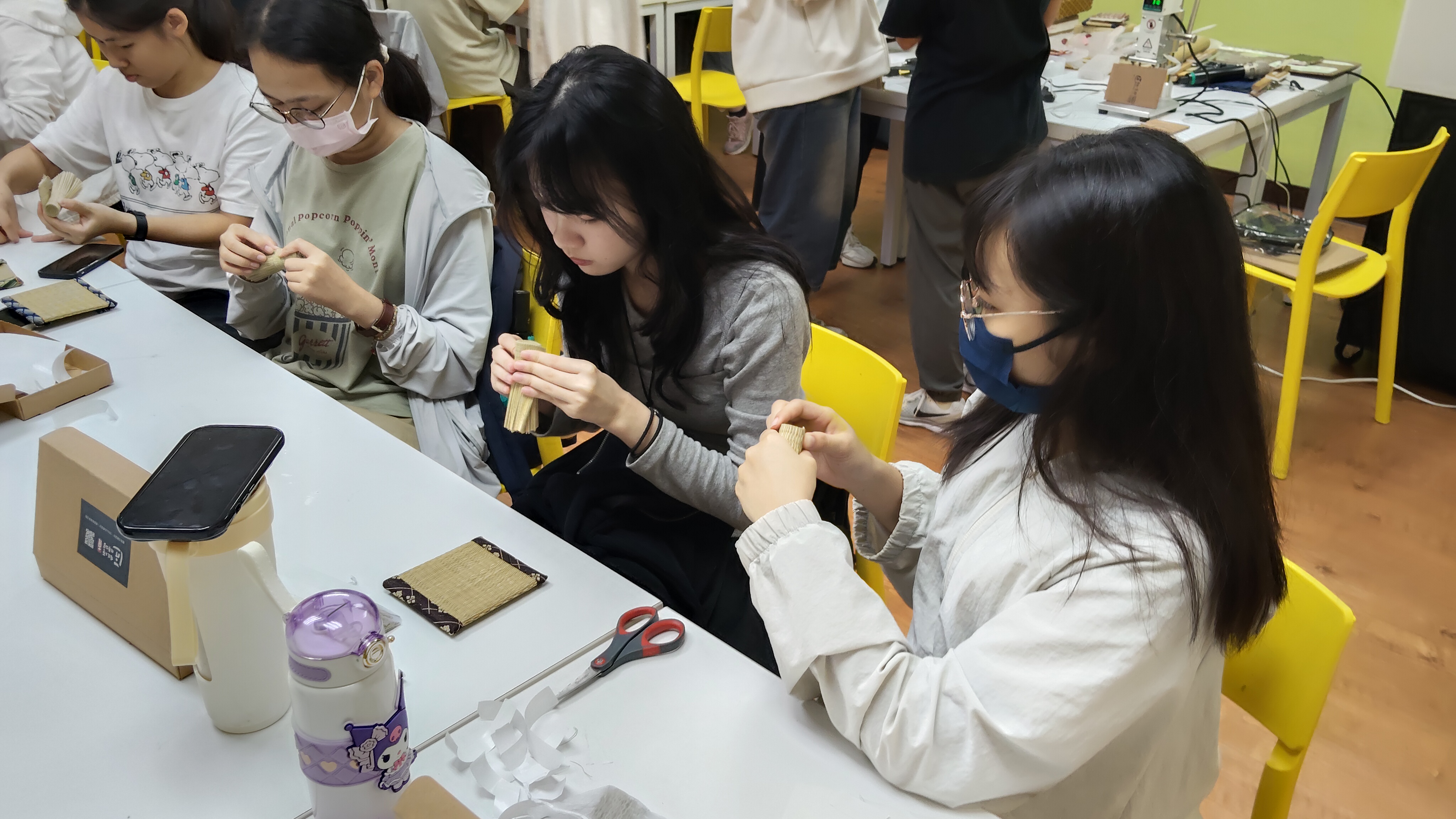 在講師的細心引導下,學生實際操作迷你榻榻米杯墊的製作,從裁切、修邊到定型,每一個環節都需仔細對齊與壓實,方能完成一件結構穩固又美觀的作品,有興趣的同學更進一步體驗了使用熱模具在榻榻米上壓印圖樣的過程,感受傳統技藝結合創意的樂趣。製作過程中,學生不僅能親手感受藺草的香氣與質地,也能體會傳統工藝中所蘊含的專注與耐心,讓古老技藝在現代生活中以新的姿態延續。於實作最後,講師帶領同學使用製作塌塌米產生的多餘材料,製作香包與藺草子,使材料能得到有效再利用。透過親手製作迷你榻榻米杯墊,學生體驗到藺草工藝的樸實與溫潤,手作的節奏讓人放慢步調,在裁切與壓製的重複動作中獲得療癒與成就感,也更加理解傳統工藝背後的文化精神與技術美學。 保健系卓同學提到:這次的體驗課真的很棒,不僅培養了我的美感,也讓我有機會親身體驗以往從未嘗試過的手作過程,感受到傳統工藝的溫度與樂趣。 護理系陳同學表示:透過這堂課,我更加了解榻榻米的傳統文化,也意識到這項技術正逐漸失傳。能夠親手參與榻榻米的製作,讓我深刻體會到它在生活中的應用與文化價值,也希望未來能藉由分享與行動,推廣這項珍貴的技藝。 護理系粘同學覺得:課程讓我學到了榻榻米的內部結構與製作流程,親手動手製作迷你版榻榻米杯墊的過程非常有趣,還利用邊角的藺草材料製作成藺草子——日本常見的小玩具,讓我感受到材料再利用的創意與環保精神。 商設系陳同學分享:這堂課讓我第一次了解以往只在阿公阿嬤家裡出現的榻榻米原來是這樣一條一條編織而成的!親手體驗在撕除多餘草條時,特別能感受到榻榻米職人的用心與細膩工法,真是超級酷的體驗。 醫技系陳同學認為:透過這次課程,我學習到榻榻米的手工藝過程,看到師傅們如何以一針一線縫製出完整的榻榻米,也認識了製作時所需的特殊設備與材質,對傳統工藝的敬佩之情油上升許多。 在講解與實作之後,現場25位同學各自完成了自己製作的塌塌米杯墊,這不僅是一場動手創作的體驗,更是一次傳統文化的學習與傳承。學生可將所學應用於生活中,製作實用又具美感的小物,為居家環境增添自然氣息;同時,也能在未來的創作與設計中,融入傳統工藝的概念,展現對文化的尊重,從親手製作開始,學生學會在細節中尋找美,在專注中培養耐心,讓榻榻米的工藝精神在日常生活中持續發光。 |