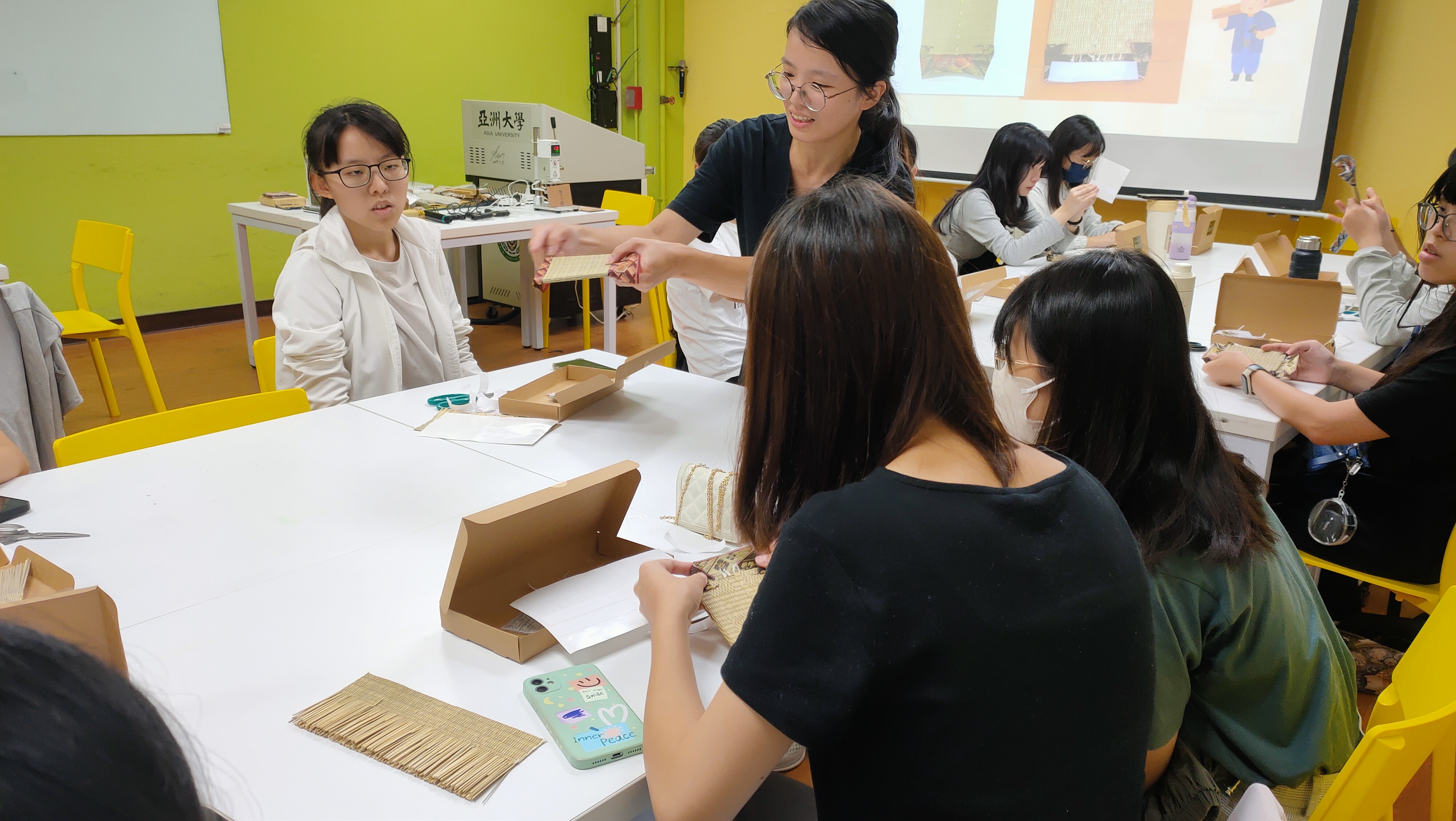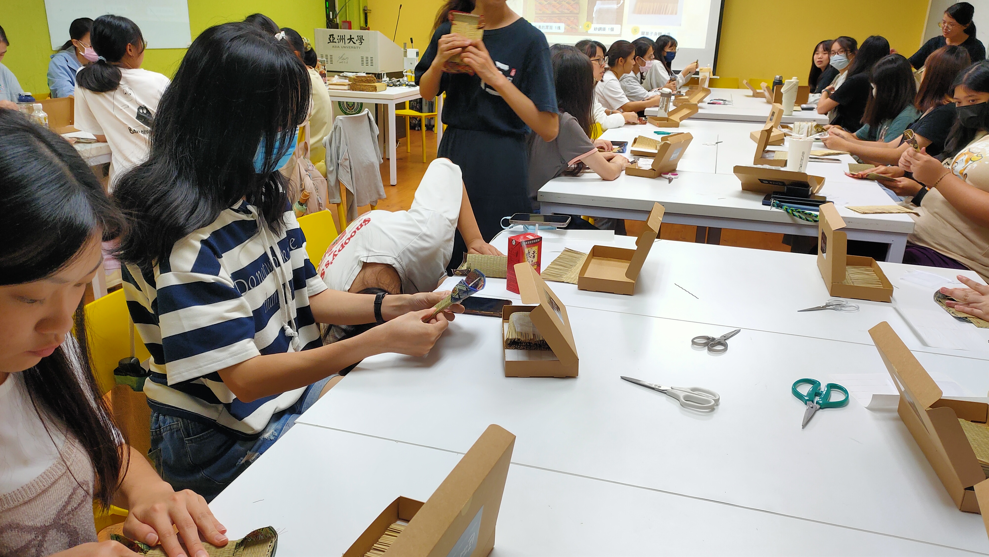 講師:陳虹誼 活動簡介:認識榻榻米在建築文化中的功能與構造邏輯,理解天然材料的加工與編織方式;藉由手工製作鍛鍊對傳統工藝的尊重與品質意識,培養材料應用與結構整合能力。 榻榻米作為傳統工藝的一部分,不僅象徵著日本居家文化中的自然與簡約,更承載著手作工藝的細膩精神。亞洲大學感恩學苑於114年10月20日晚間六點半時於HB88舉辦了「塌塌米手作體驗活動」活動,誠邀陳虹誼講師傳授塌塌米相關知識與歷史,感受藺草香氣中蘊藏的文化與匠心。 首先,講師以榻榻米的文化背景為開場,介紹其在日常生活中的多元用途,從傳統的地墊到現代的家居設計元素,皆展現了榻榻米在時代轉變中的適應與演變。講師進一步說明榻榻米的構造,包含蓆面與蓆邊的分工,以及製作中所需的工具與步驟,並分享多位傳統師傅們在實作中累積的寶貴經驗。學生不僅了解了榻榻米的製作工法,也學會辨識不同材質的特性與運用。