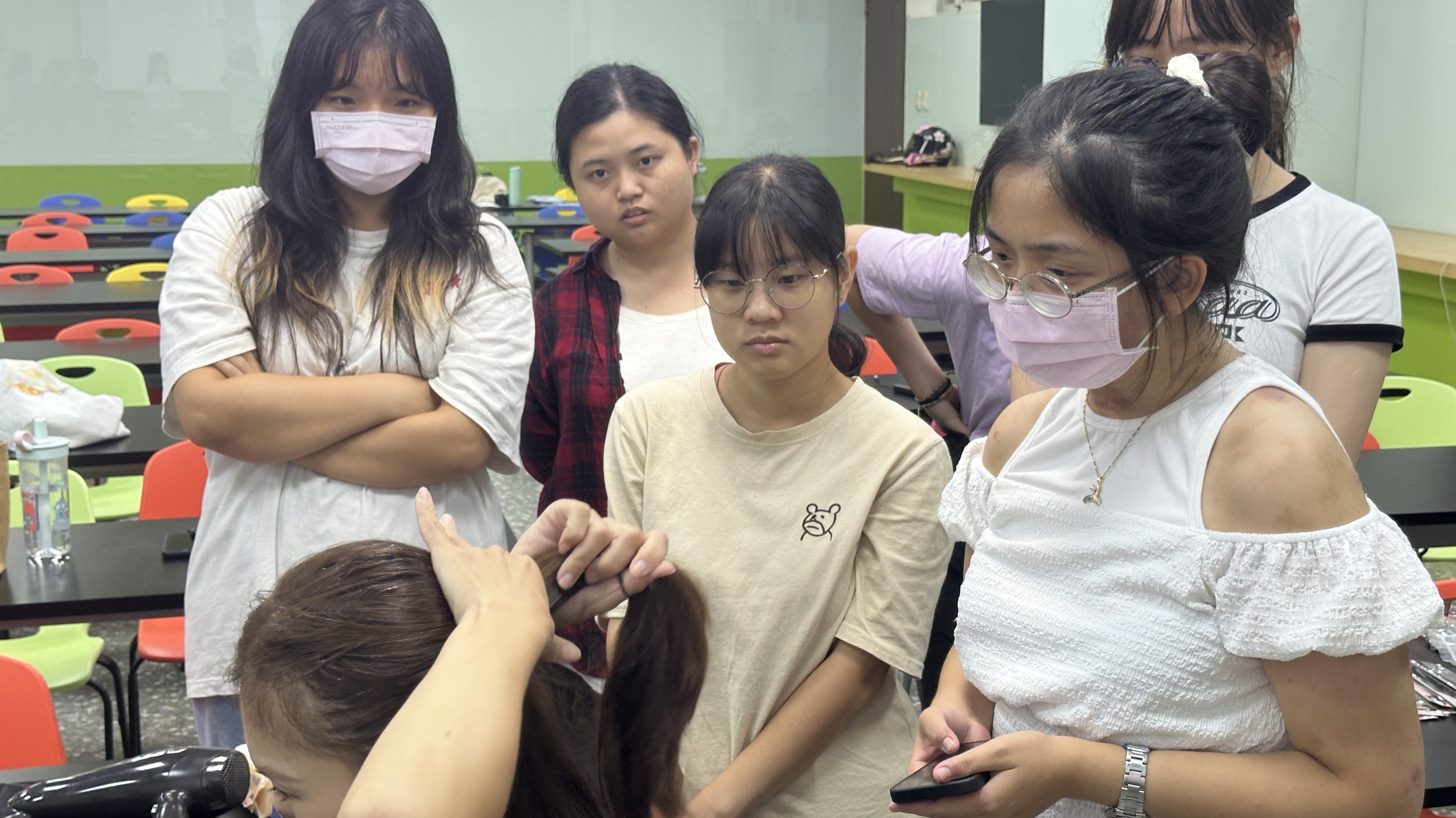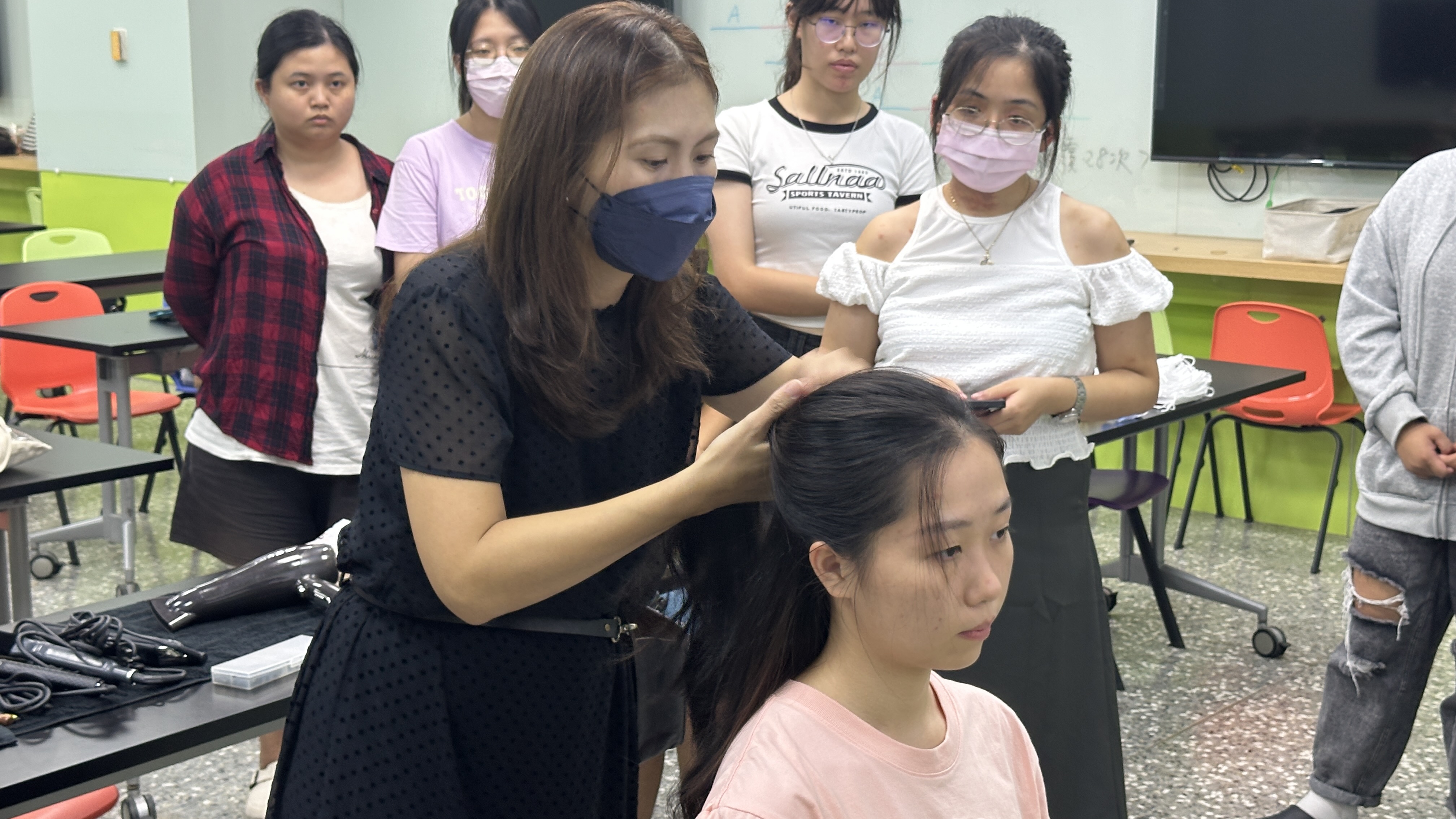講師:陳梓妤 活動簡介:學習臉型、髮量與工具類型間的對應關係,理解基礎髮型設計的結構與重點操作手法;透過自我造型實踐,培養對整體形象管理的責任感與風格意識,並提升在社交、工作或面試場合中的自信展現;熟練日常編髮、整理與造型技巧,能靈活運用簡易工具打造乾淨有精神的造型表現,提升外觀細節的自主調整能力。 髮型能展現個人的氣質與品味,也是整體造型中不可忽視的重要角色。亞洲大學築夢學苑於114年10月20日晚間六點半在L011教室舉辦「品味:輕鬆好上手髮型課」,邀請陳梓妤講師指導同學髮型造型,從日常簡約到正式典雅,讓同學們輕鬆掌握又能展現自信魅力的造型技巧。 講師首先向同學們介紹不同臉型與髮量適合的造型技巧,並說明各類造型用品的使用手法與搭配原則,例如髮膠、髮油、髮夾等,甚至連梳子的選擇都有一大學問,隨後,講師實際示範三種長髮造型,從日常清新到正式場合皆涵蓋其中,並著重於面試時的髮型整理重點,強調整潔與精神的重要性;針對短髮的男同學,示範以髮膠打造清爽俐落的面試造型。