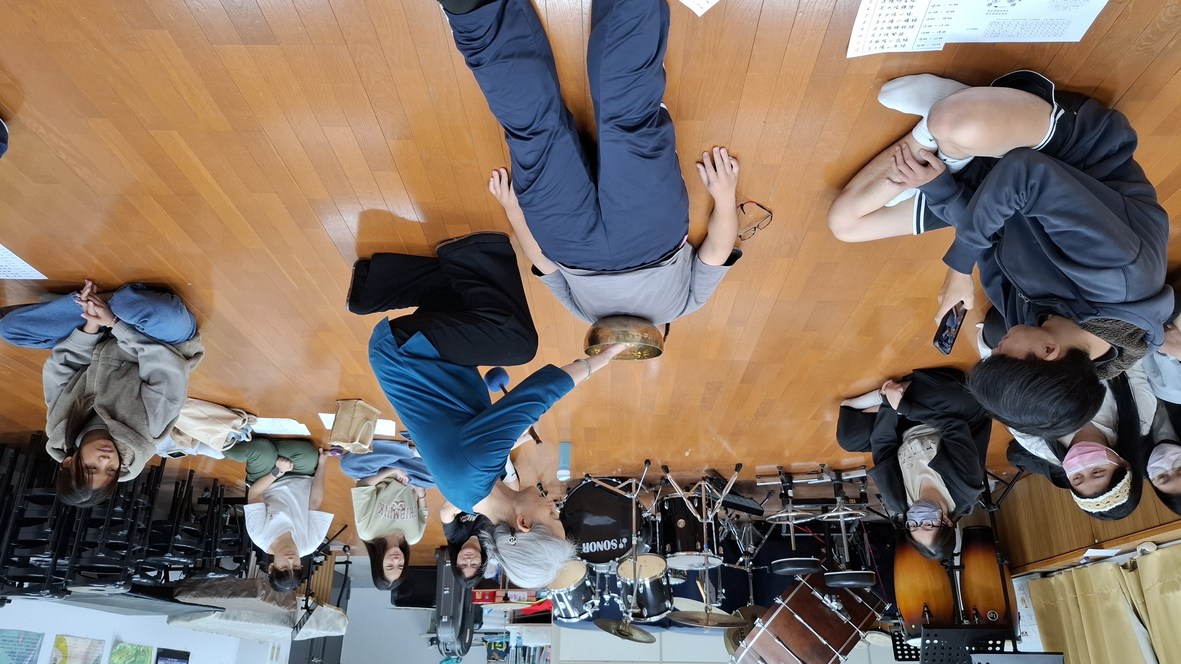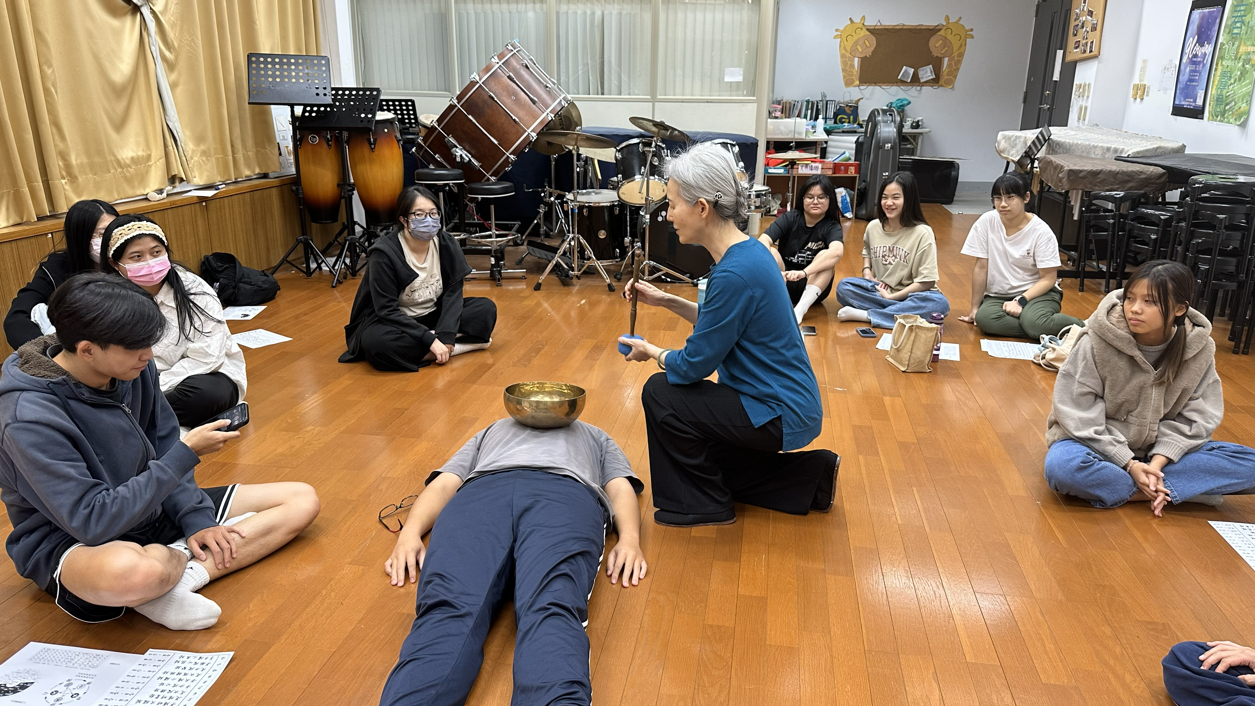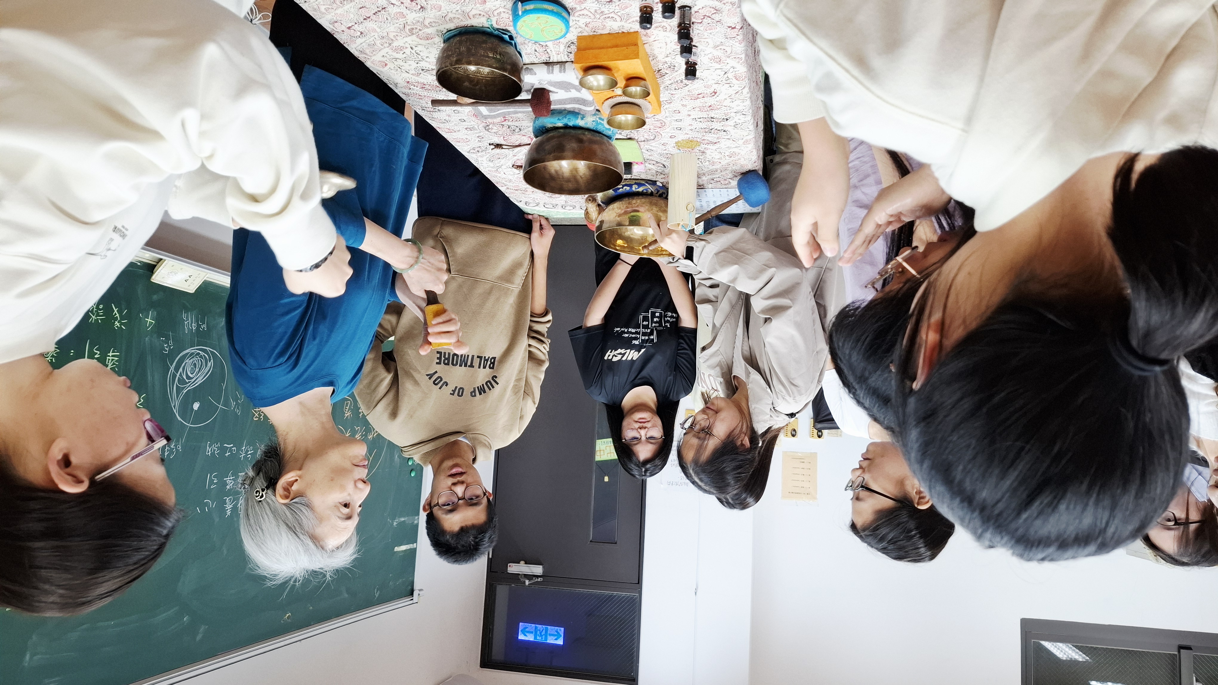講師:張玫芝 活動簡介:認識太極導引的動作邏輯與芳香呼吸對神經系統的作用原理,理解中醫養生與運動療法的關聯;發展身體控制與心境穩定的能力,提升日常姿勢與壓力感知的敏銳度;習得簡單太極招式、芳香導引與呼吸節奏調整技巧,能作為日常身心調節方法。 靜心與慢行之間,一場結合易經智慧、臟腑對應、芳香療癒,以及頌缽共振的身心調律課程,在亞洲大學惜福學苑靜靜展開。114年11月25日晚間18:30,邀請張玫芝講師於體育館二樓G201教室舉辦「太極導引 × 芳香吐納 × 健身養心」,帶領學生從東方哲學出發,走進人體能量、情緒與呼吸的深層對話 課程伊始,講師首先從《易經》的陰陽轉化與五行流動談起,引導學生理解「身體即是宇宙的縮影」,萬物循環的節奏也存在於氣血運行與情緒波動之中,從太極圖的黑白交會與太極導引的開合動作中,看見身心連結的哲學基礎——不是用力去穩,而是「以鬆養力、以靜引動」,講師強調,太極導引並不追求高難度動作,而是讓身體在鬆、穩、緩的過程中,開啟與呼吸、能量與情緒之間的真實對話。