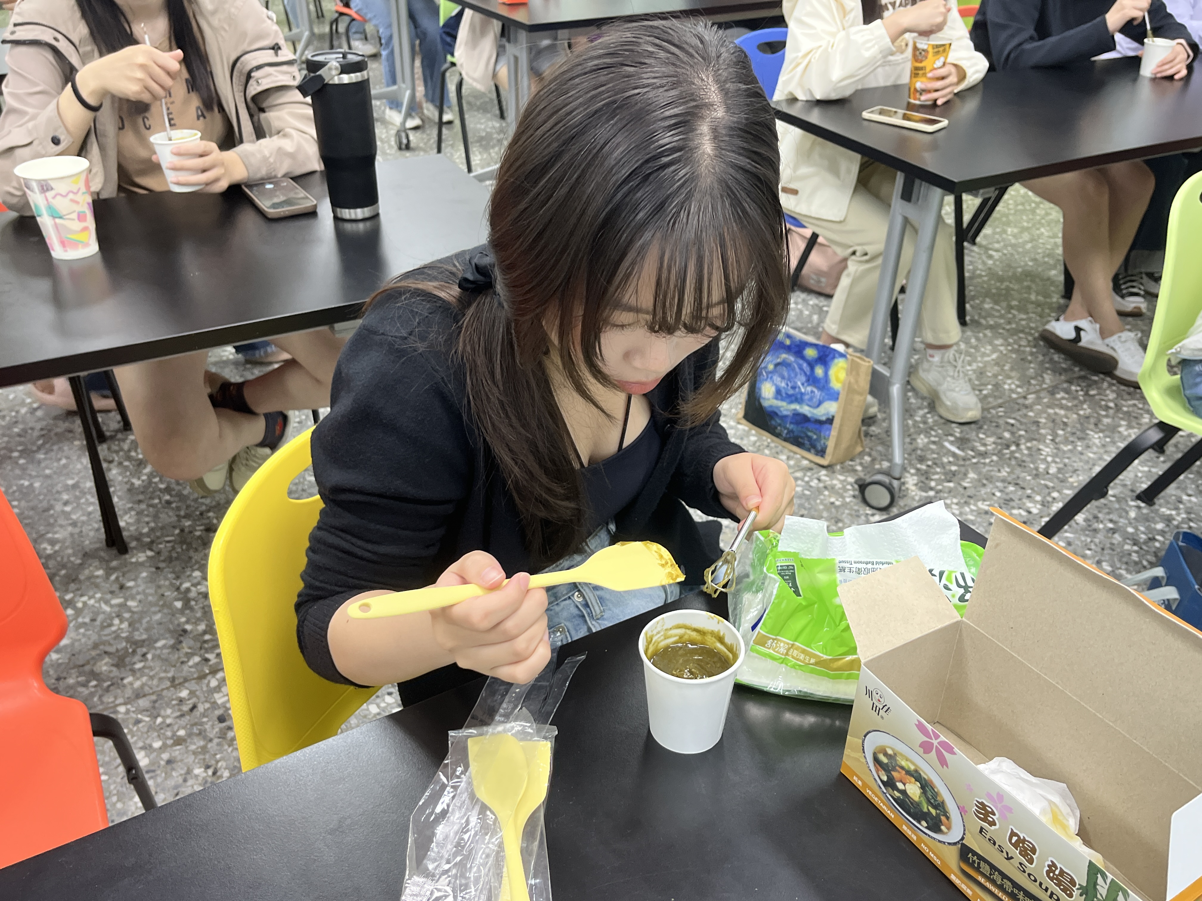 護理系的陳同學:這次課程讓我學到的溫和手工皂配方,並在實作攪拌的過程中,親手觸摸並感受到「皂化反應」真實產生的放熱現象,這讓原本只存在於書本上的化學理論,瞬間變成具體可感的實用技術,未來在日常清潔或衛教上,我也能更安心、更有把握地運用這些知識。